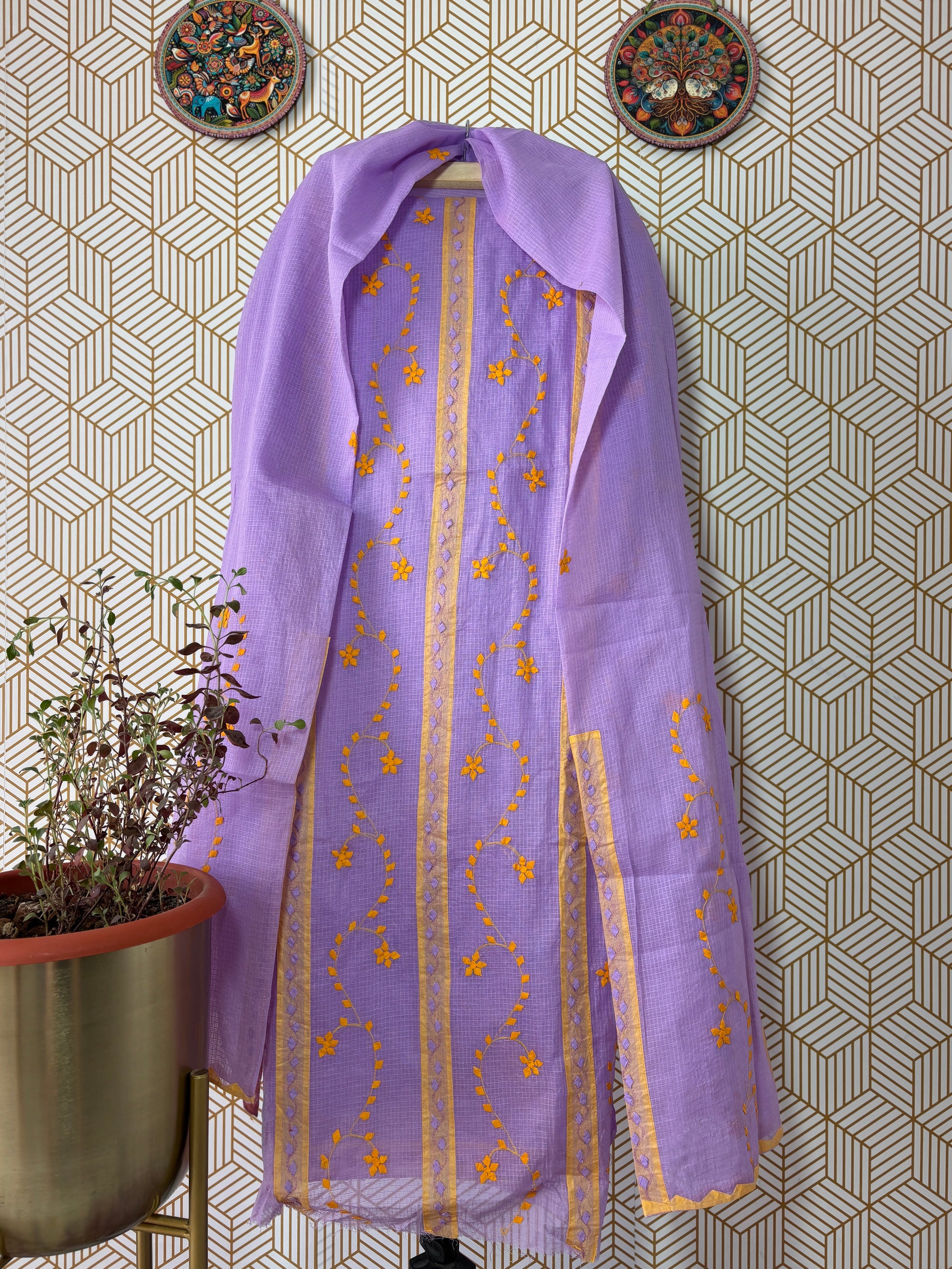 Very beautiful handcrafted appliqué work kurta dupatta set in different shades 🌿