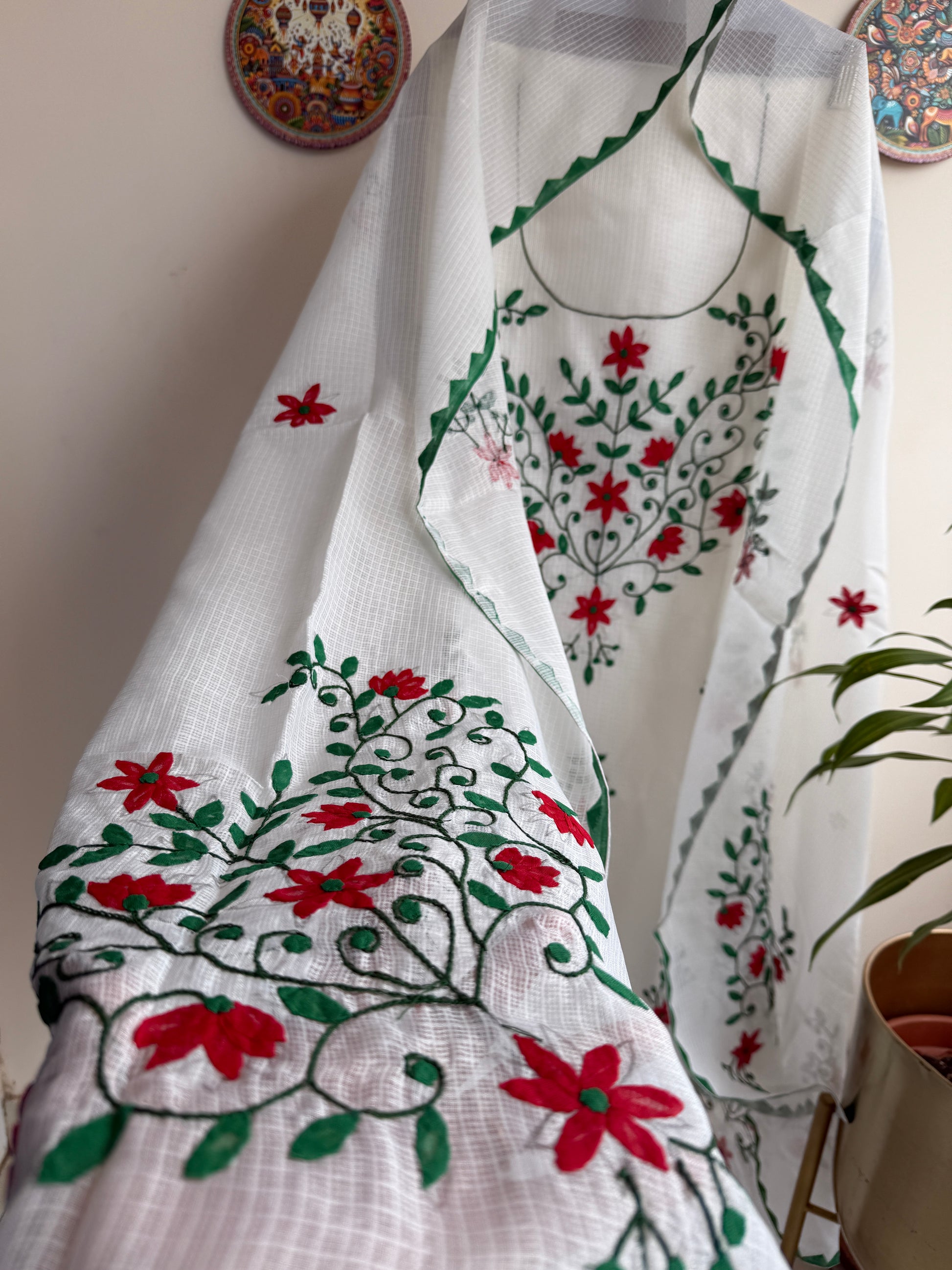 Aligarh's Tradional handcrfted Phoolpatti (applique)- Multicolor Phool Patti with White Base