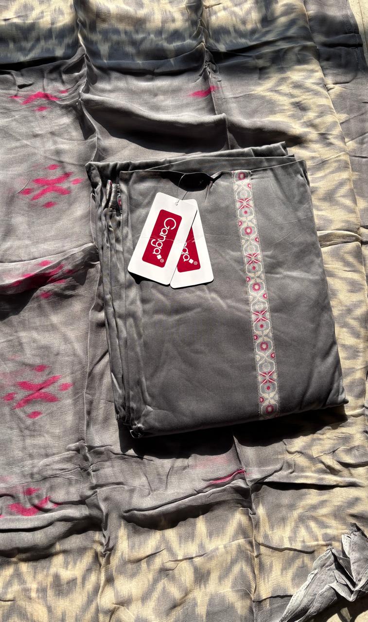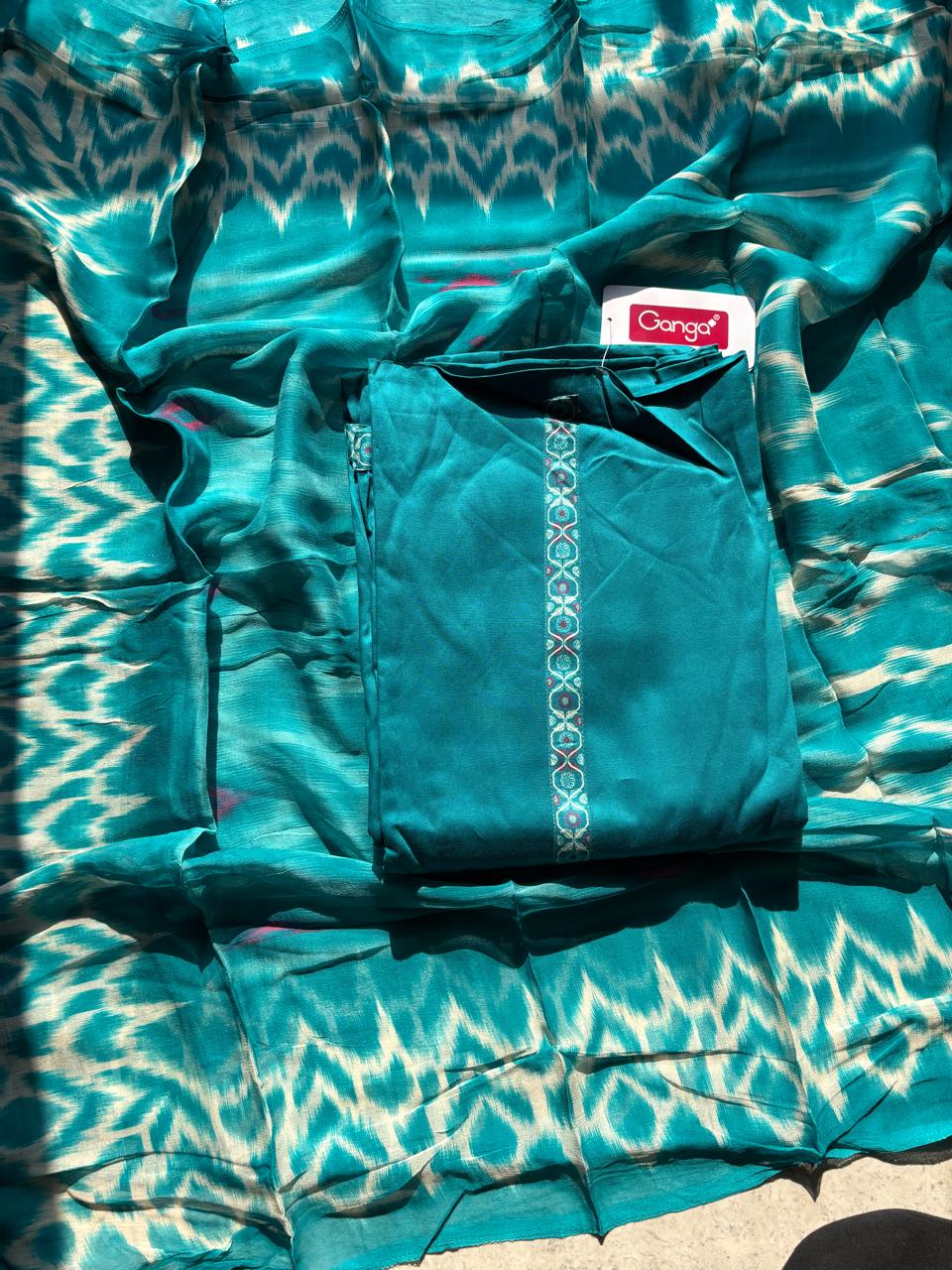 Pure cotton solid top paired with digitally printed chiffon dupatta along with pure cotton bottom