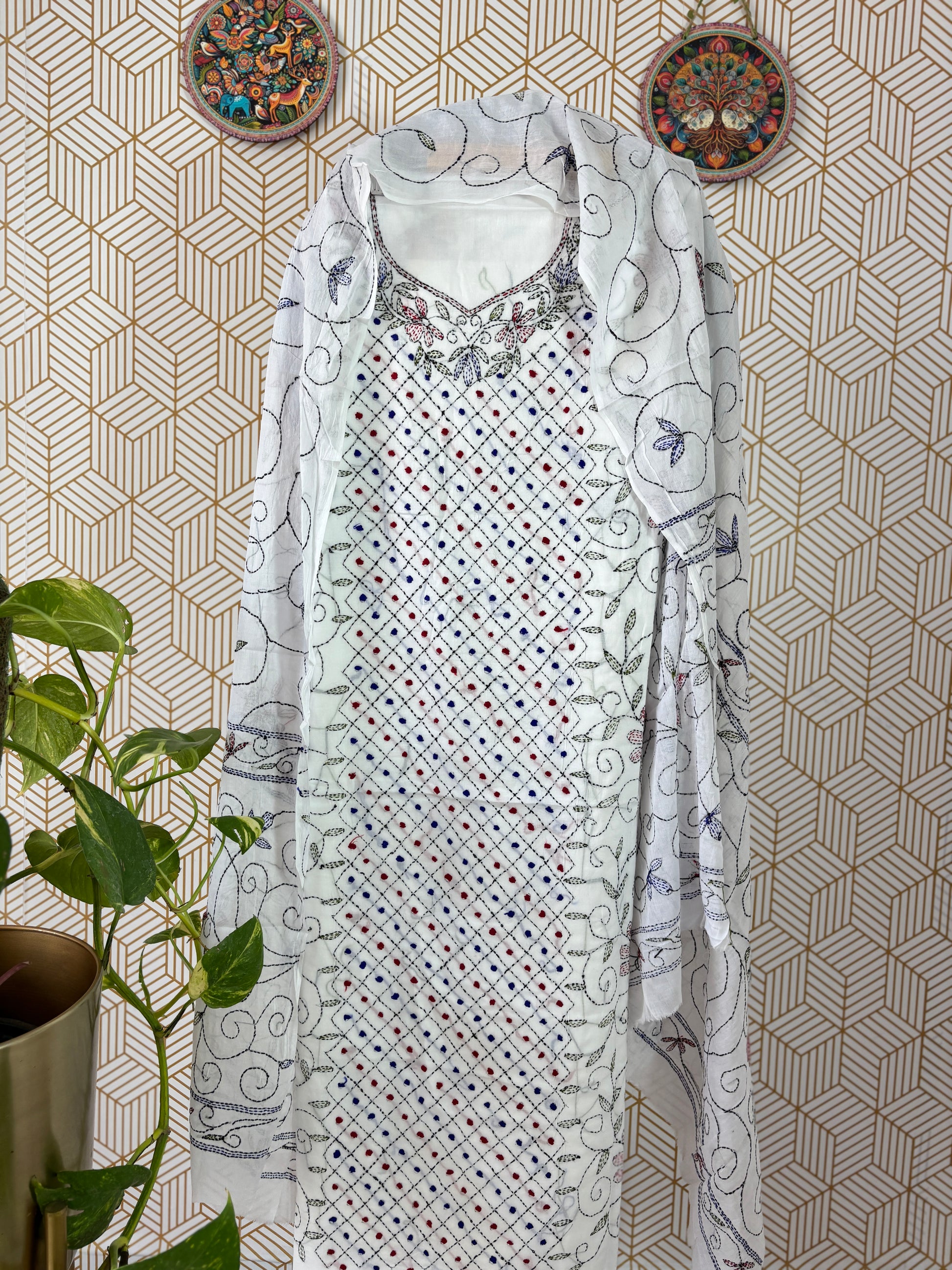 Pure Cotton Kantha Handwork Suit Set-Geometrical Shape