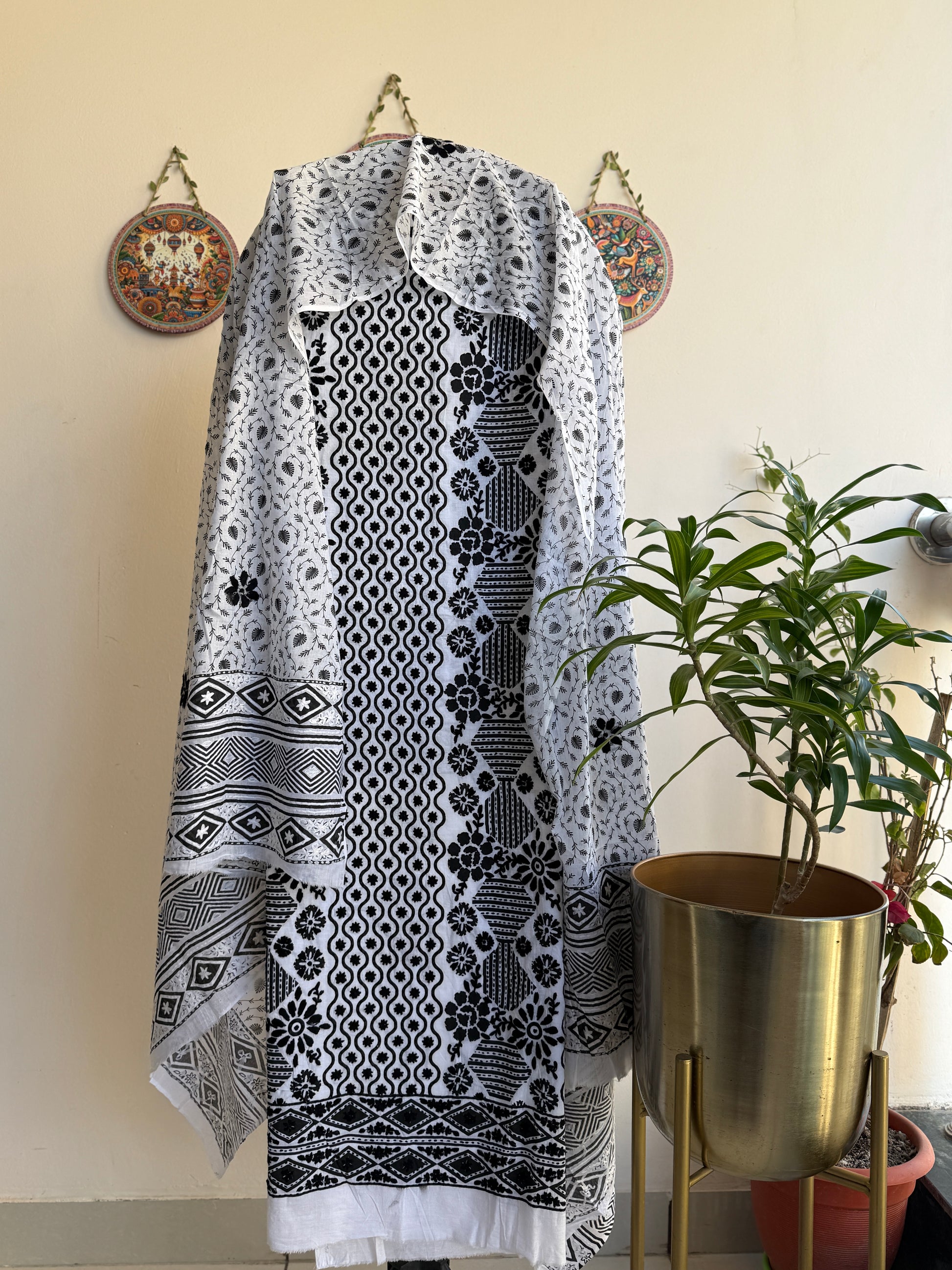Step into timeless elegance with this beautifully handcrafted suit set. Made from 100% pure cotton, the top and bottom feature intricate hand embroidery over a traditional hand block printed base, paired with a matching hand block printed dupatta. Soft, breathable, and adorned with graceful floral motifs, this set is perfect for effortless everyday style or casual elegance. ❤️
