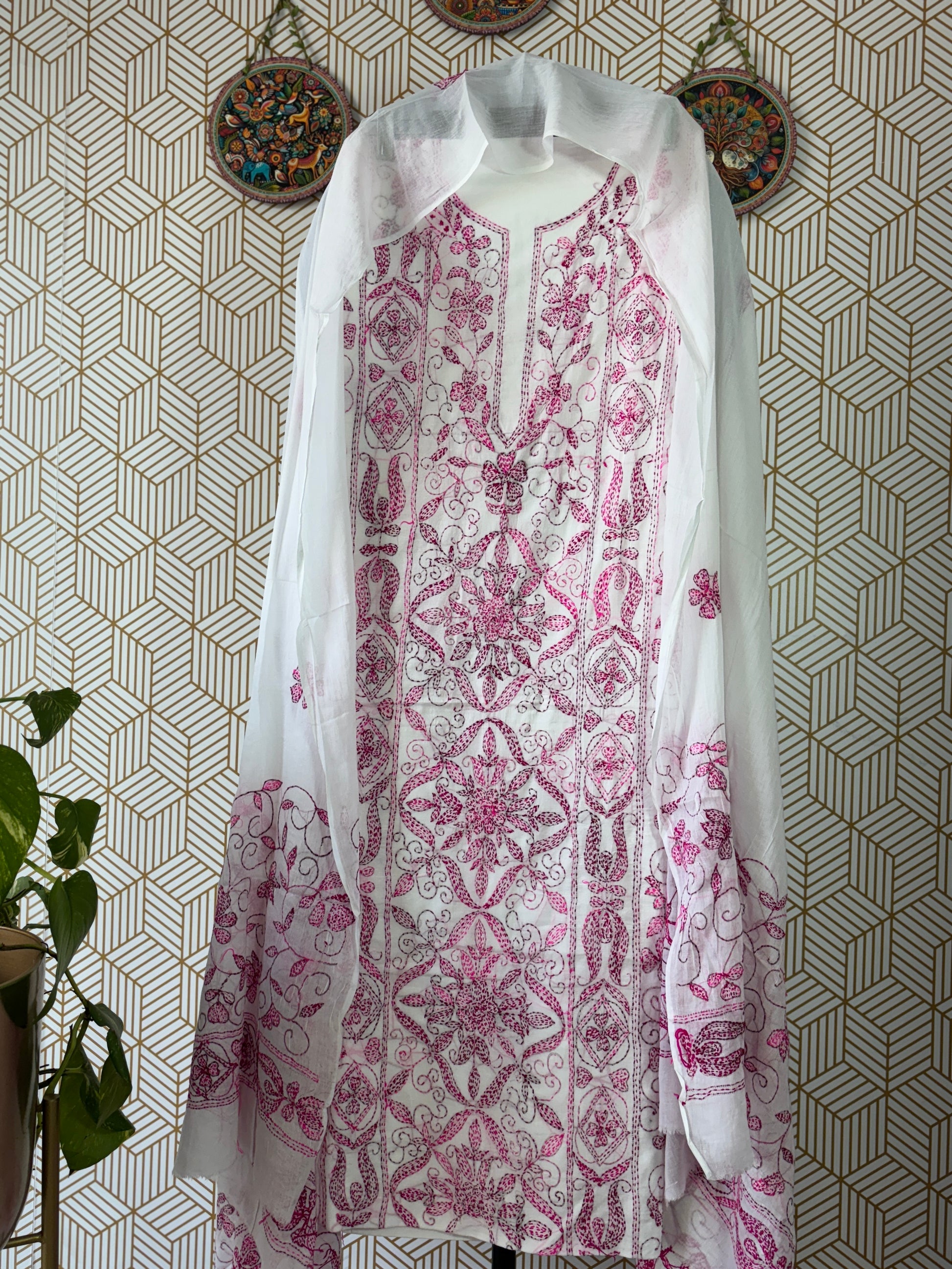 Kantha hand embroidered Suit Set Pure Cotton- White Base