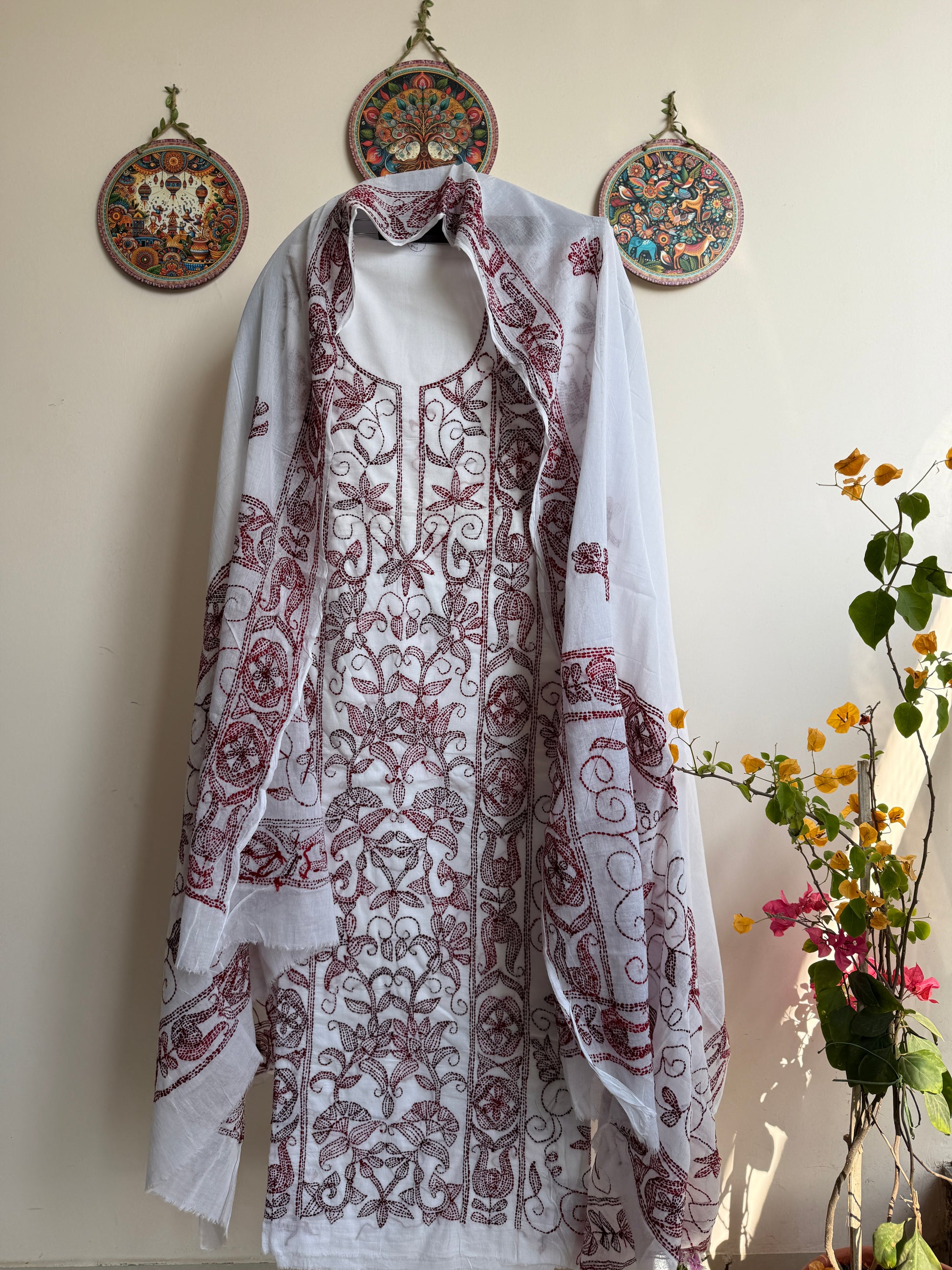 Bengal Handloom – Kantha Stich Pure Cotton Embroidered Suit Set