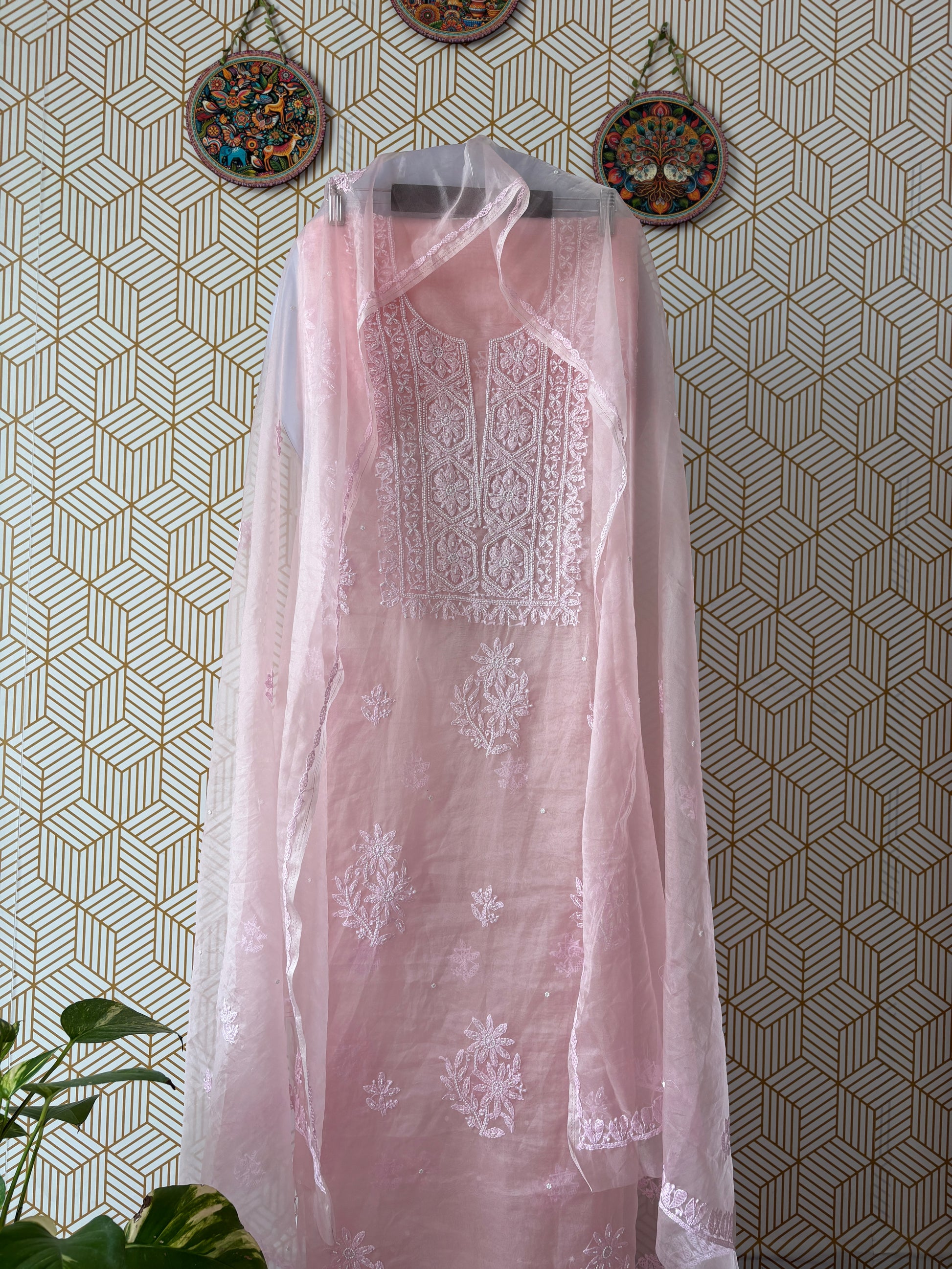 Lucknowi Chikankari Thread Work in Pure Organza add on Pearl Work