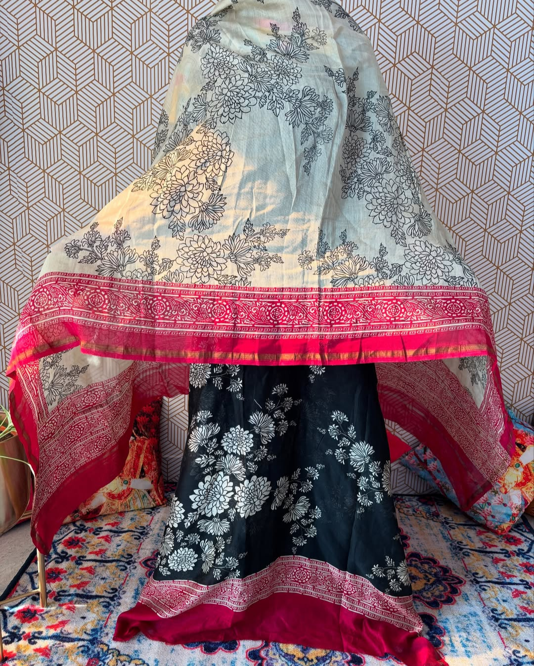 Pure Maheshwari silk digital floral print top paired with pure Maheshwari silk digital floral dupatta along with pure cotton silk plain bottom ✨