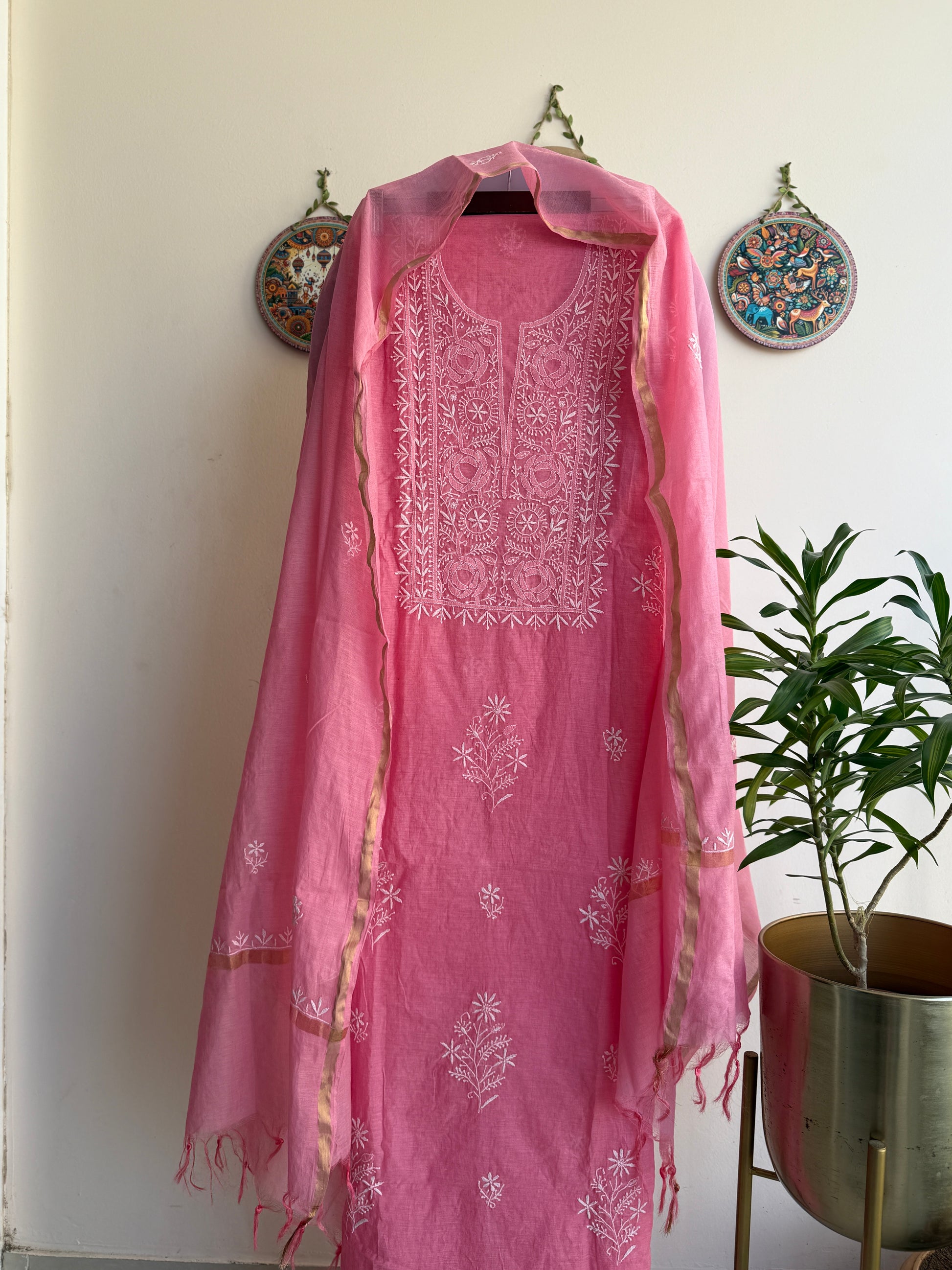 Lucknowi Chikankari Set – Pure Mul Chanderi Handcrafted Elegance