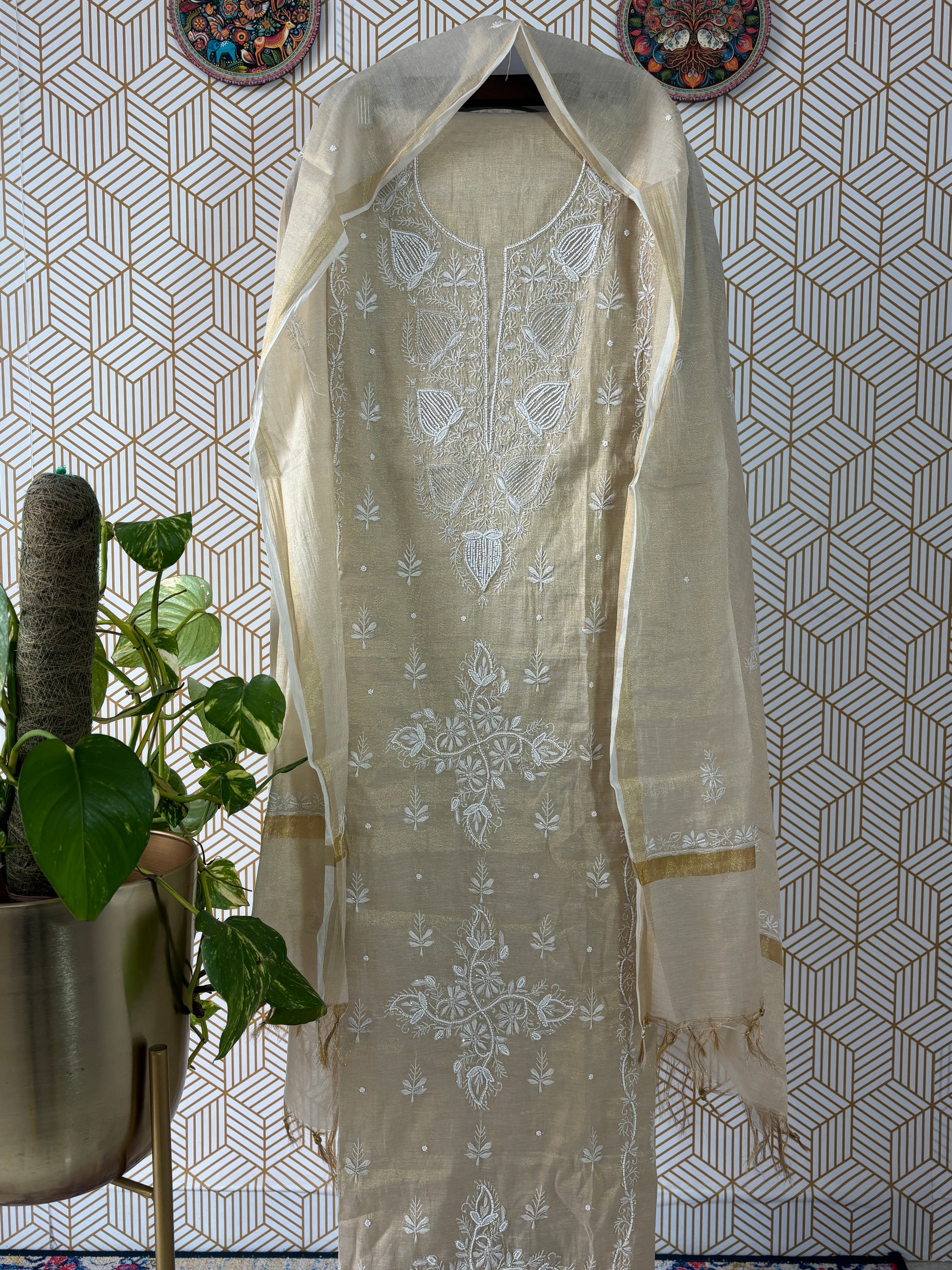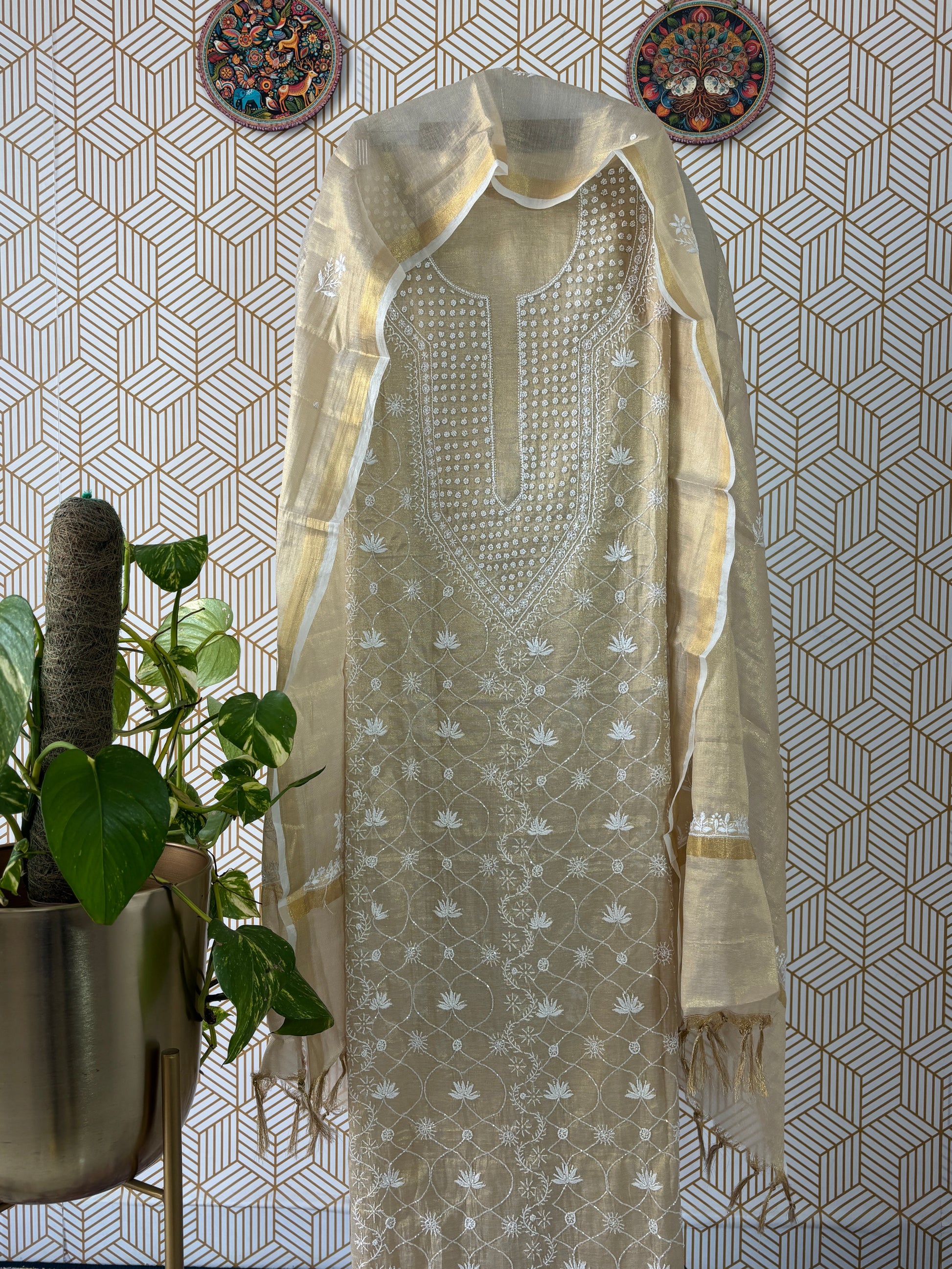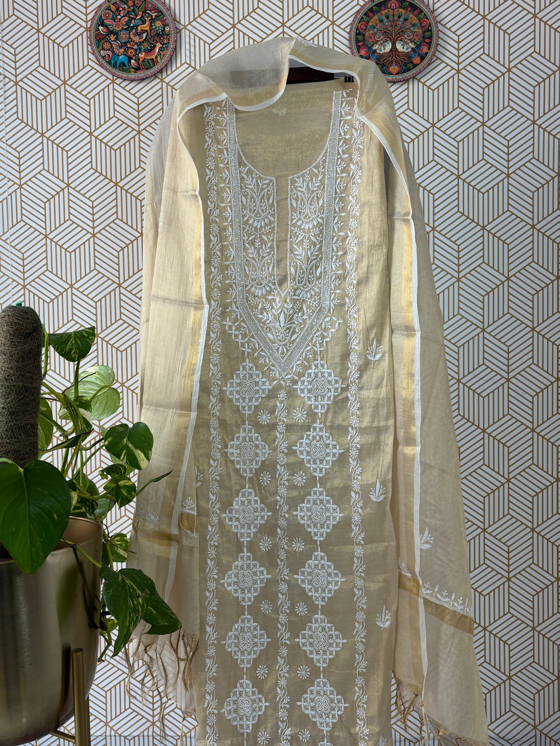 Step into timeless elegance with our latest collection: Handcrafted Lucknowi Chikankari on luxurious Tissue Silk ✨